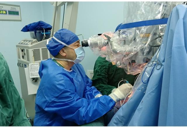 匡卫平主任手术团队精细操作,在神经显微镜和神经电生理监测辅助下,按照手术计划一步步切除肿瘤。