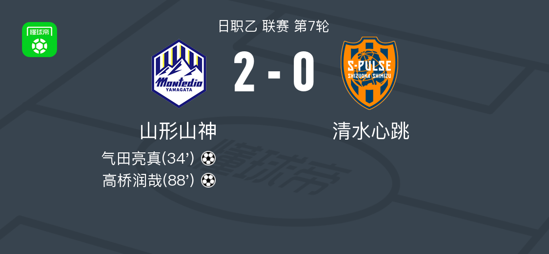 北京时间3月30日日职乙 联赛 第7轮,山形山神主场对阵清水心跳。山形山神气田亮真破门,高桥润哉破门。最终比分山形山神2-0清水心跳。