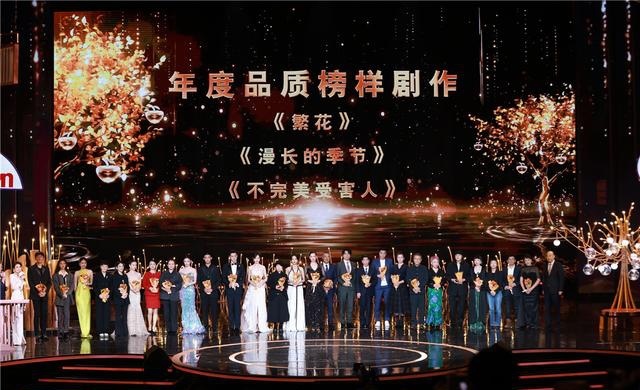 盛典上,过去一年间具有全国影响力的现象级大剧先后在盛典亮相,彰显了中国电视剧创作的澎湃动力。爆款剧《繁花》《漫长的季节》《不完美受害人》被授予“年度品质榜样剧作”,它们题材各异、聚焦时空不同,但思想精深、艺术精湛、制作精良的品质追求是一样的,对人与时代的关切也是相通的。正因此,它们带着不同的美学特征、表达内涵,从我们脚下的土地生长出来,最终都走进了观众内心。