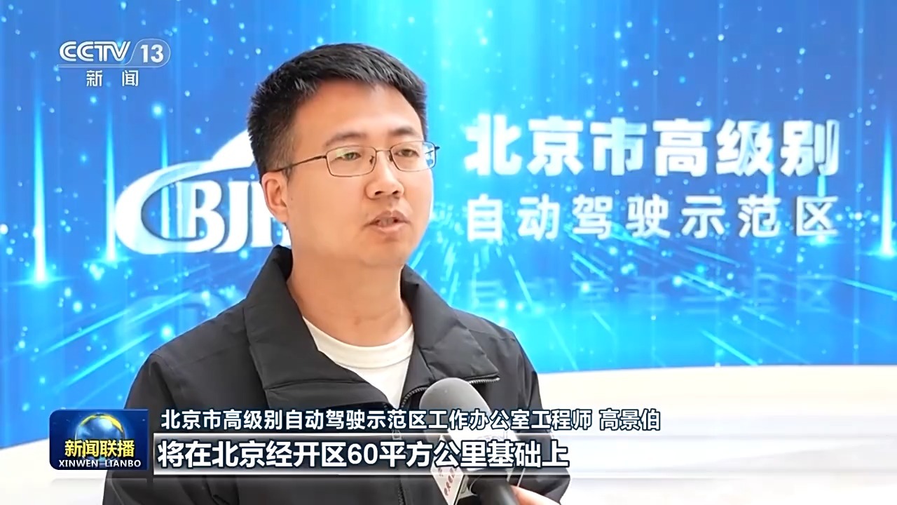 北京市高级别自动驾驶示范区工作办公室工程师 高景伯:北京市高级别自动驾驶示范区,将在北京经开区60平方公里基础上,逐步覆盖全市600平方公里。今年,示范区还将推动机场、火车站、城市道路清扫等重点应用场景有序开放。