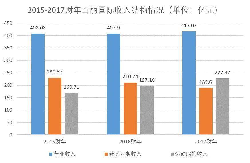 从2015财年到2017财年,百丽国际的营业收入增长4%,主要来自运动服饰。鞋类业务收入却下滑19%,净利润更是下滑了49%。