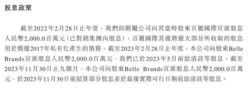 按照招股书,控股股东百丽国际从百丽时尚收到的股息,大部分都用于偿还2017年私有化产生的债务。
