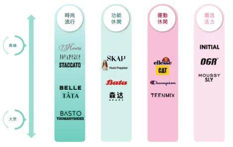 品牌方面,百丽将73Hours、Champion等19个品牌囊括旗下,形成了横向时尚、休闲、运动、潮流四大类别,纵向高端和大众两个价格区间。