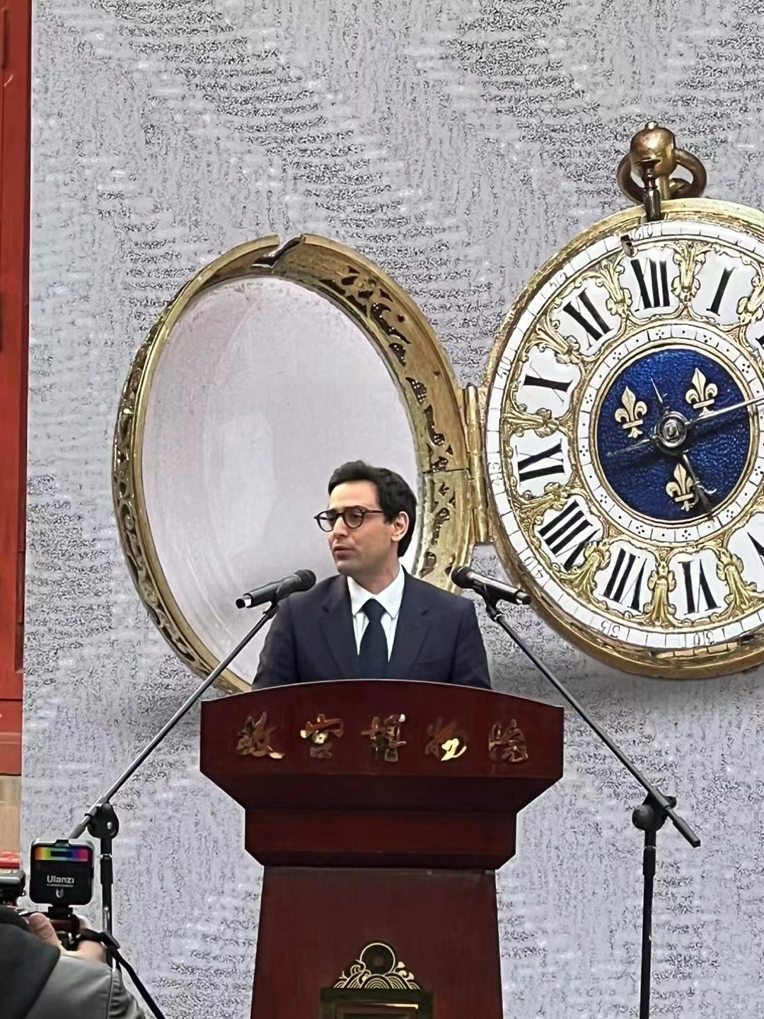▲ 法国外交部长斯特凡·塞茹内(Stéphane Séjourné)在现场致辞