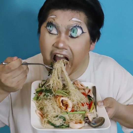 扮装完毕后,按照惯例Lowcostcosplay 接着分享了嗑掉食物的照片,充分展现了低成本Cosplay 是不会让食材浪费掉的。