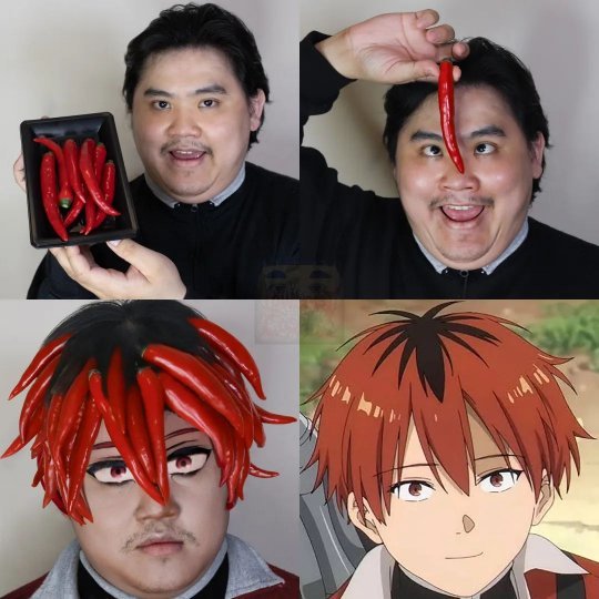 好战又嗜血的尤贝尔在《葬送的芙莉莲》一级魔法师选拔测验篇中有着不小篇幅。这次Lowcostcosplay 选择使用超大片绿色蔬菜呈现出尤蓓尔的马尾,用黑色缎带制造出黑色小礼服颈圈的效果。当然,尤蓓尔的超吸睛特色也被「腋」样画葫芦地忠实呈现。