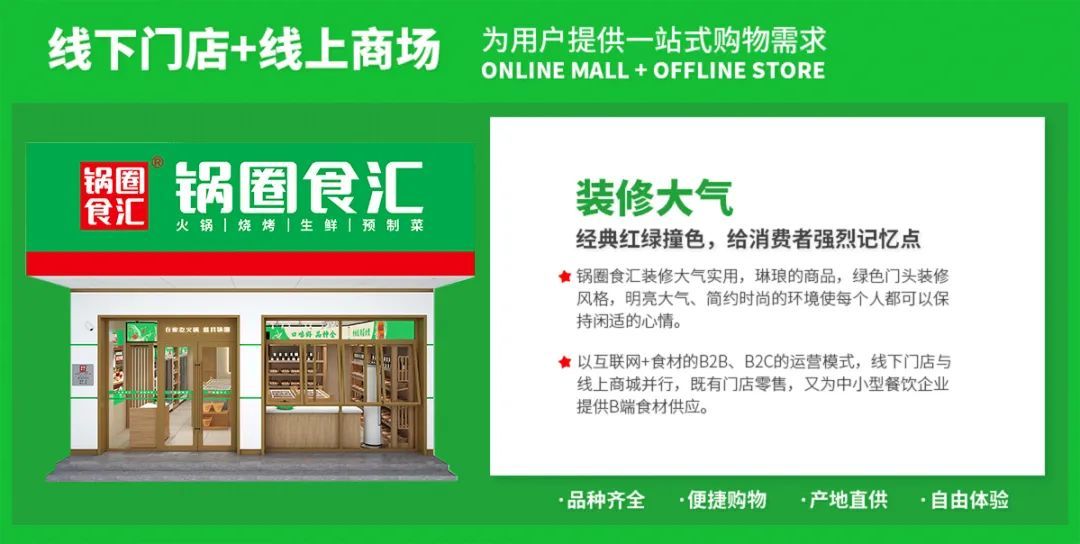 通过对供应链进行的全链路改造,锅圈将“食材——食品”的转化效率做到极致:在产地源头直采直供,降低中间流通环节的损耗;整合超过600家专业食材工厂,并在部分地区投资助农工厂,进行标准化食材生产;搭建起“门店-仓储-物流-工厂”一站式供应链体系,更好地服务连锁门店。