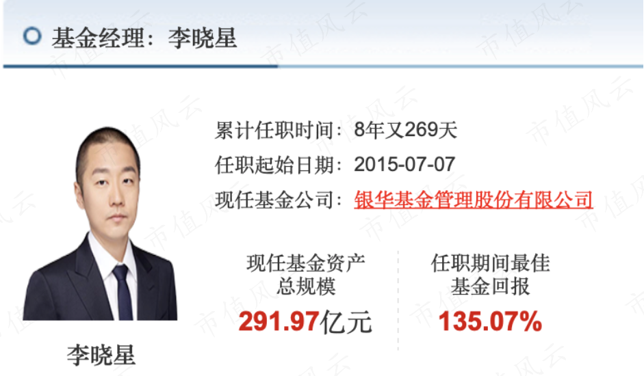 截至2023年末李晓星以管理规模291.9亿仍位居银华基金权益类资产一哥,目前他任职期间最佳基金回报率为135.07%。