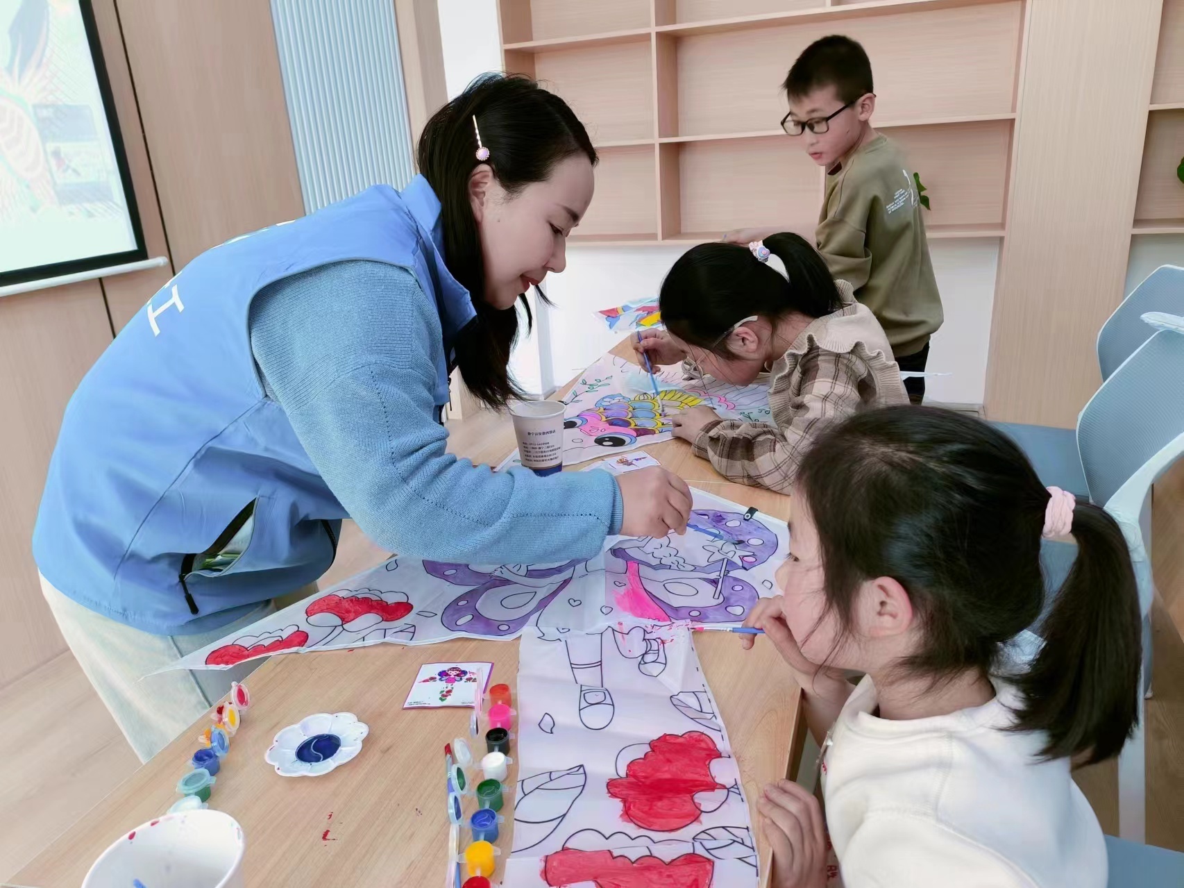 活动中,工作人员首先向小朋友们介绍了风筝的历史文化、种类、放飞技巧等,然后给大家分发了颜料和画笔,并详细讲解风筝绘画制作步骤。孩子们巧手涂鸦,用五颜六色的画笔和颜料在图案上尽情挥洒,经过孩子们的精心绘制,一只只色彩斑斓、赏心悦目的风筝作品就诞生了。