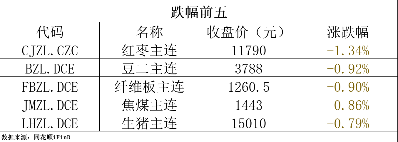 芝加哥期货交易所(CBOT)农产品期货主力合约全线收跌,大豆期货跌0.86%报1175.5美分/蒲式耳;玉米期货跌1.78%报427.75美分/蒲式耳,小麦期货跌2.06%报545.5美分/蒲式耳。