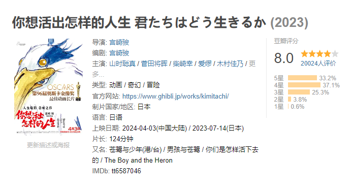 豆瓣8.0的评分对宫崎骏来说一点都不高