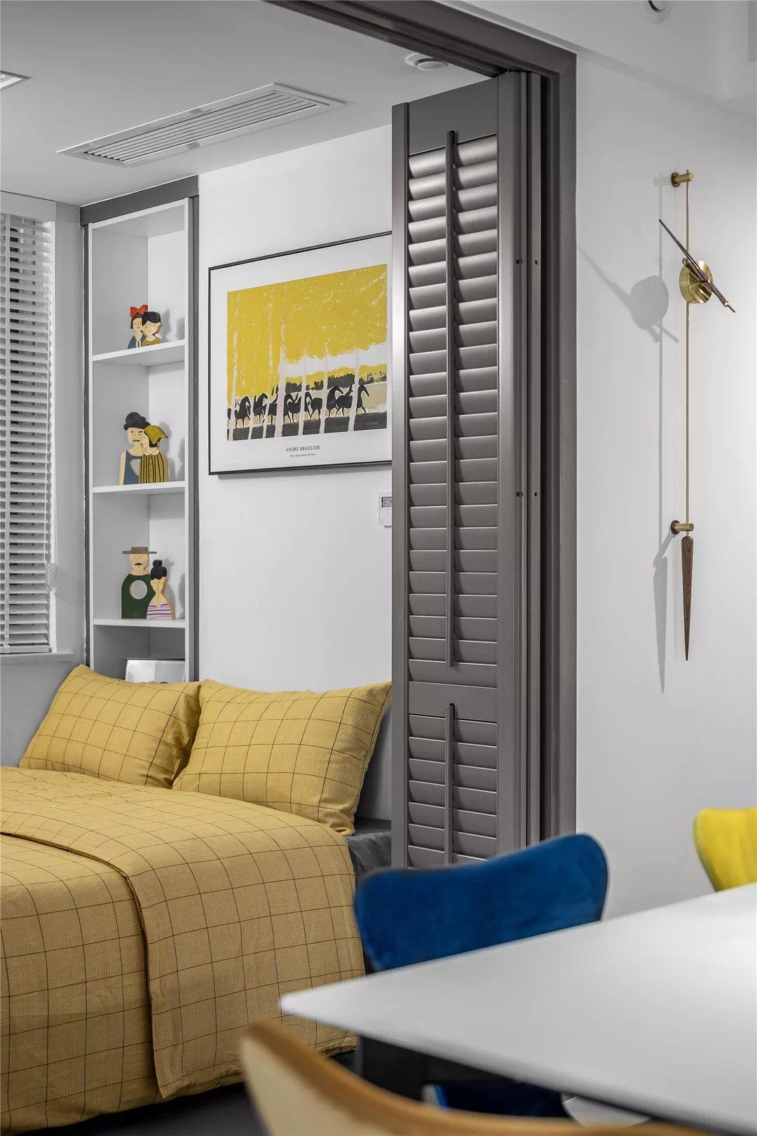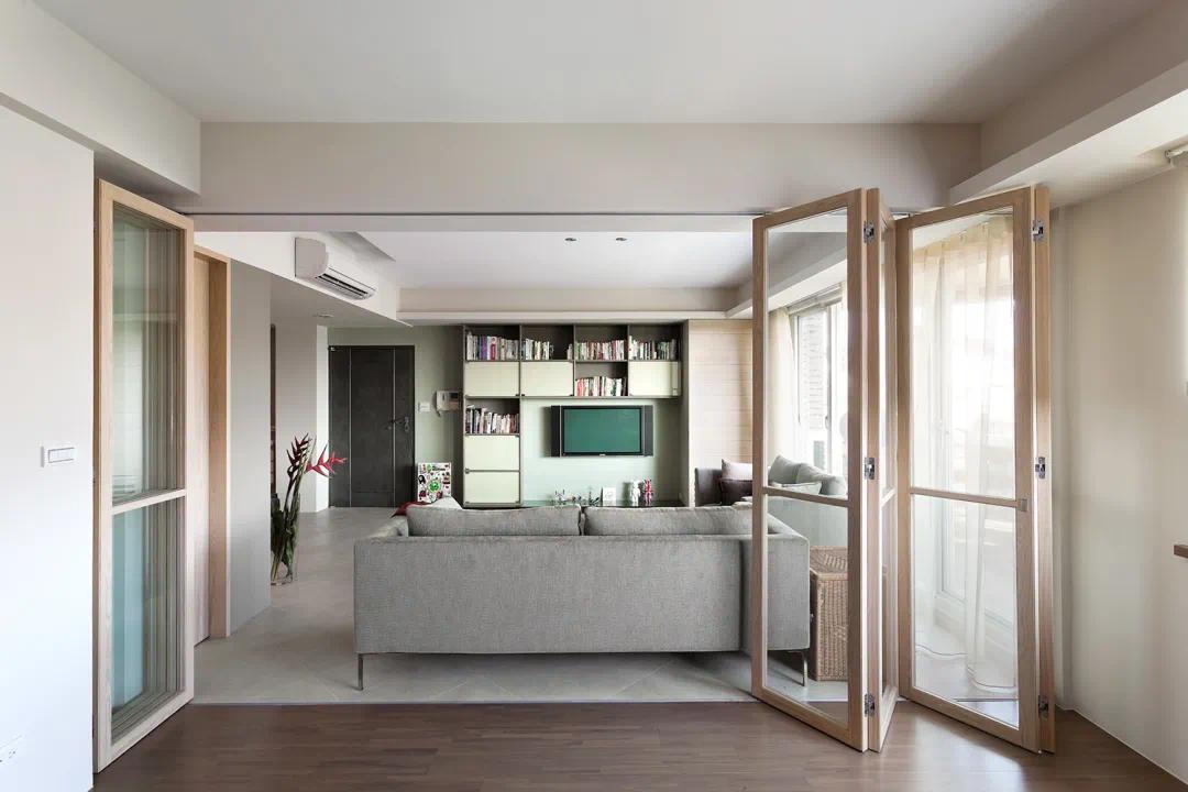 折叠门可以巧妙地划分客厅空间,隔而不断的同时,让空间的立体感上升。当折叠门开启时,空间瞬间变宽敞。关上之后,也得到一个相对独立的空间。