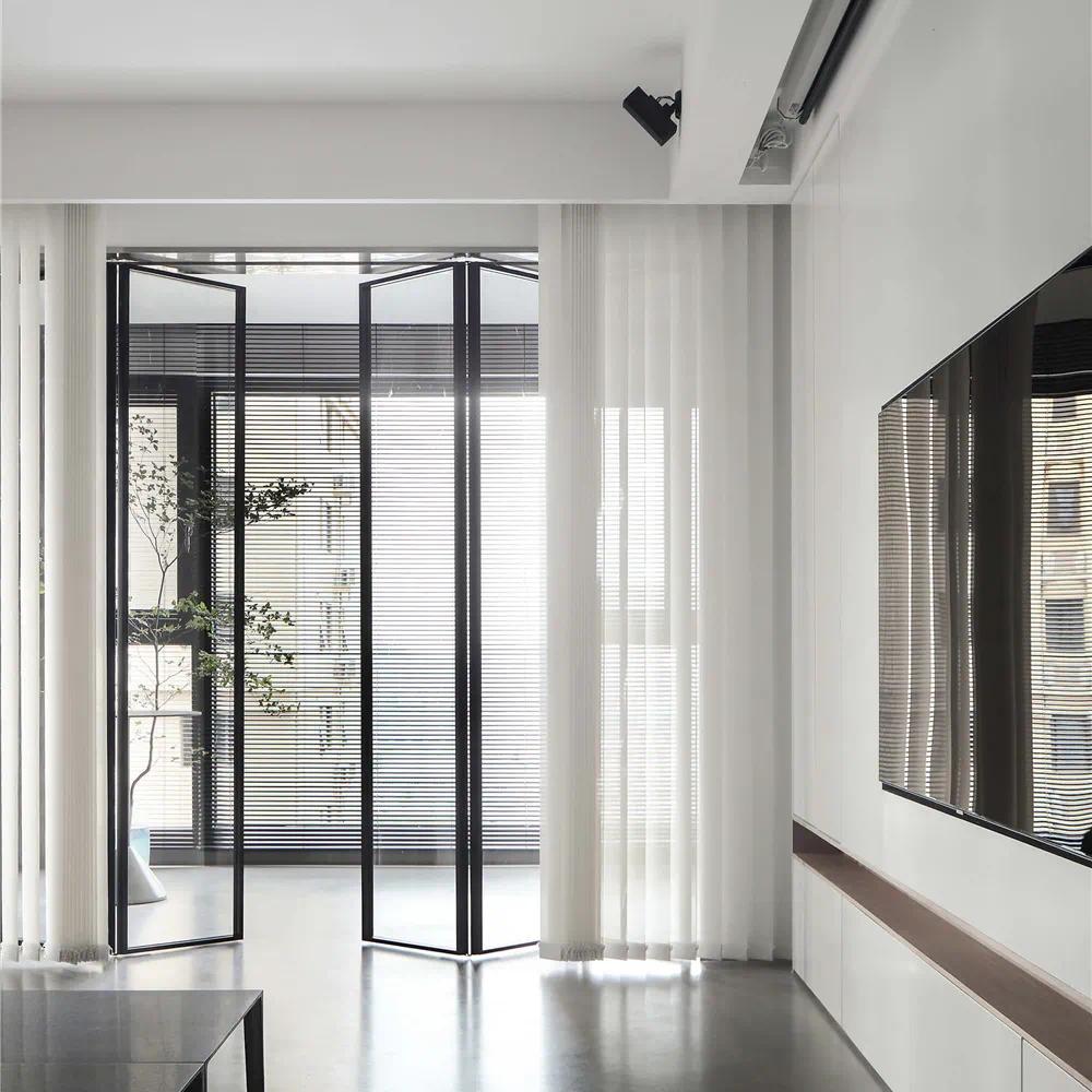 折叠门除了适用于以上空间的隔断之外,还可以延伸到室内窗和柜门。一些自然光无法直接照射到的房间,可以在非承重墙上开一个室内折叠窗,不仅达到改善光线和通风的效果,也更省空间。