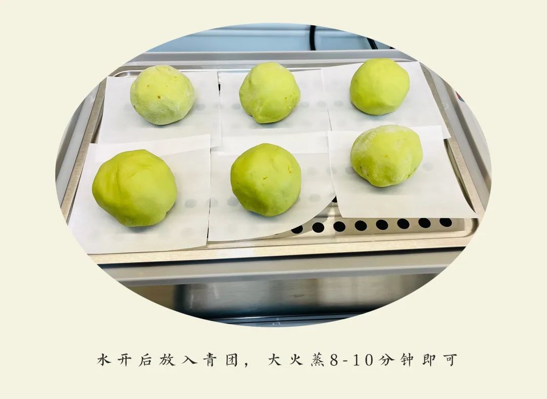 6,水开后放入青团,大火蒸8-10分钟即可