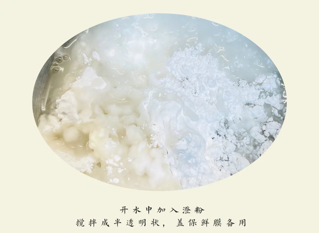 2,开水中加入澄粉,搅拌成半透明状,盖保鲜膜备用