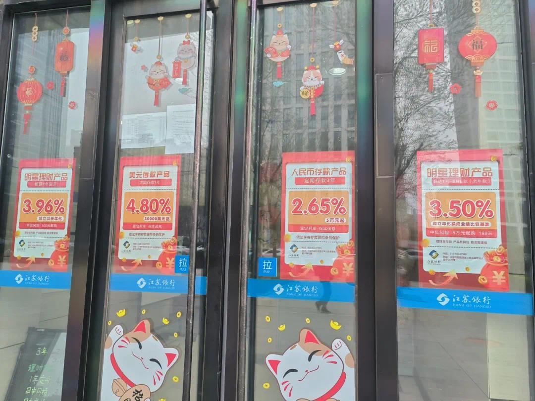 (江苏银行北京分行某网点海报 北青金融记者拍摄)