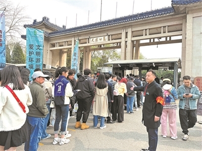 “请您提前准备好身份证或者二维码,排队通行按顺序入园。”“请注意看好脚下台阶,出园游客不要在通道逗留。”昨天上午,在工作人员的指挥下,颐和园东宫门广场上人虽然多,但是井然有序。今年清明节,颐和园将扩容和疏导作为公园节日大客流应对的重点措施,提高重点门区、重点景区应急管控措施。从远端管控在颐和园周边主要通道提前进行引导、分流,设置提示标语,减轻主要门区入园负载压力。高峰时期六个门区全面开启入园通道,增设订单二维码,双重识别快捷入园。增设非团队成人游客购票订单“二维码”,增加服务窗口和软质隔离带,提高游客现场咨询、特殊票证购票的处理速度和排队进出园的效率。