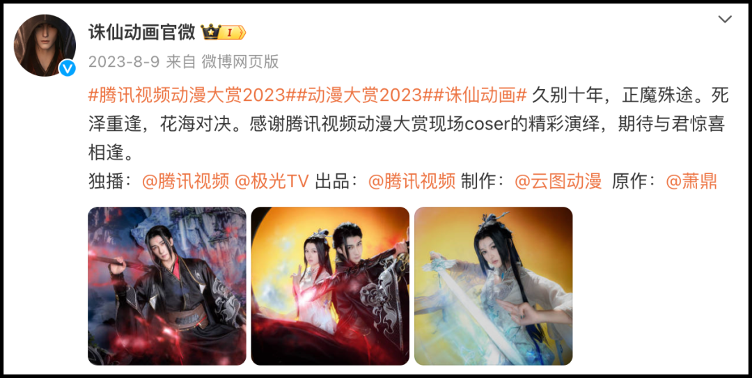 为此,腾讯视频安排《诛仙2》动画亮相“腾讯视频动漫大赏2023”,提前预热。
