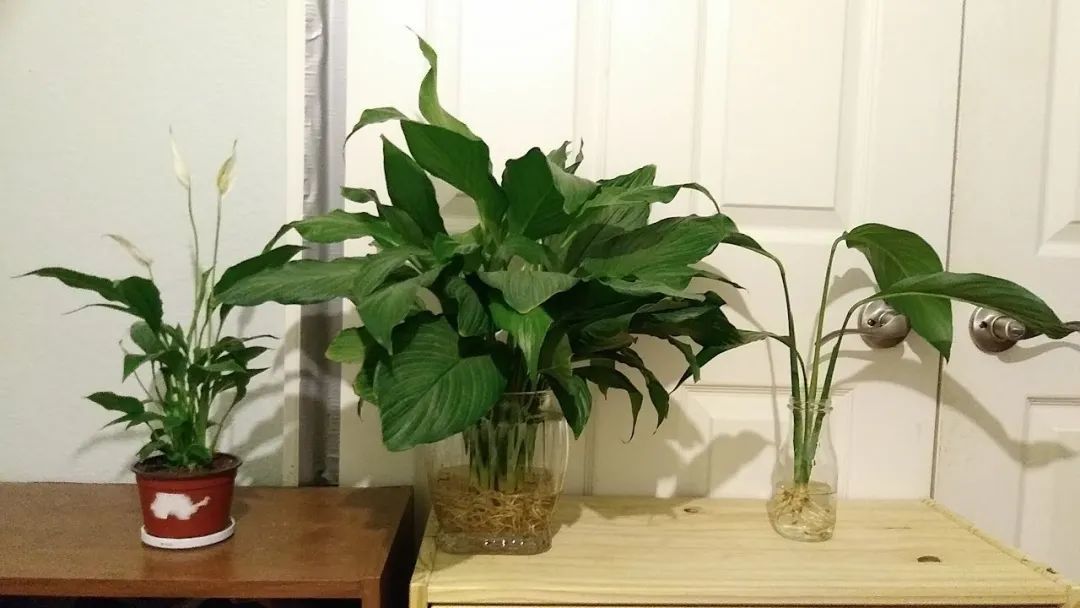 上面是白掌盆栽浇透水前后状态对比
