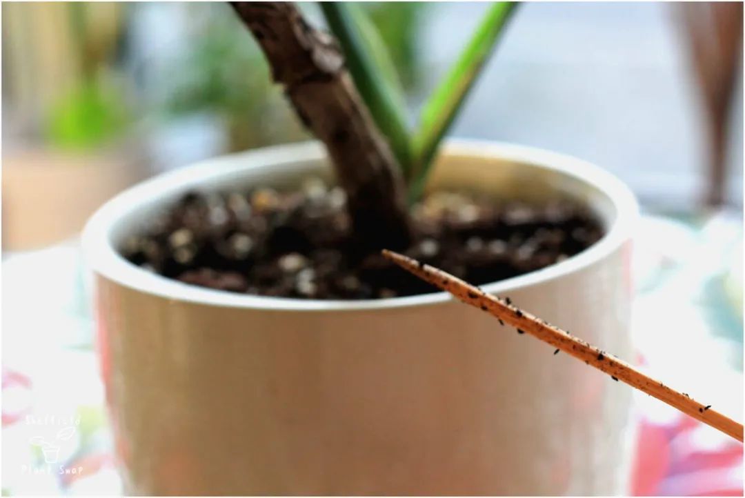 将干燥的木棒插入土壤中,要避免弄伤植物的根部,沿着盆沿的土壤插进去,再过20~30分钟后再取出来,就可以检测到土壤的干湿情况了。