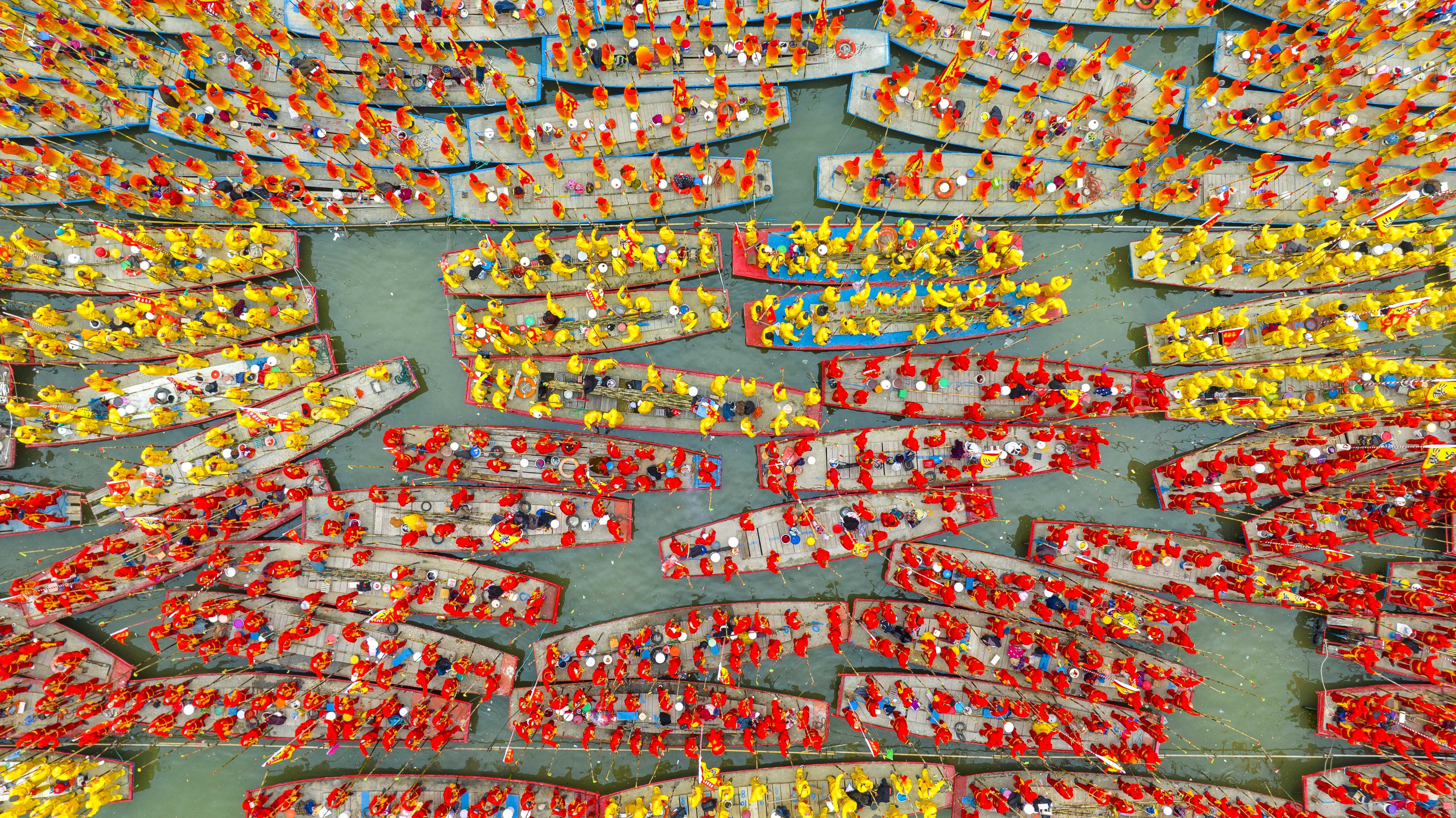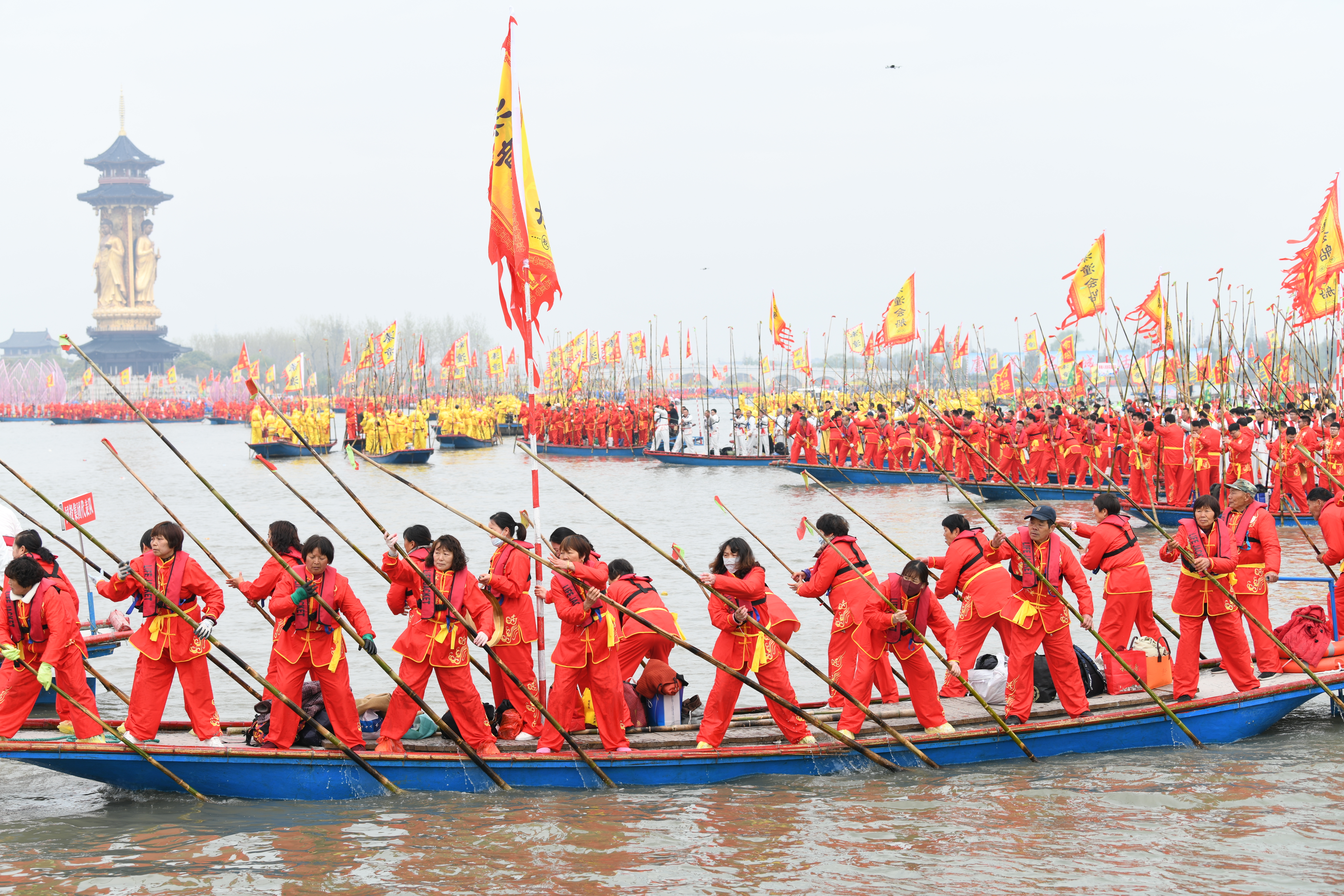 “世界上最大的水上庙会”溱潼会船是一场“旷世‘船’奇”和“四海宾朋”的风云际会。龙佑三水、龙飞凤舞、龙腾溱湖、龙兴姜城等8条贡船率先登场,气势恢宏;象征着风调雨顺、五谷丰登的龙船方阵紧随其后,活灵活现;来自友邻县市区的6条竞速篙船飞速驶来,犹如蛟龙出海;35条来自姜堰各镇街的竞速赛船,你追我赶;还有400多条篙子船乘风破浪而来:80条由清一色娘子军组成的划子船编队,激浪前行……500多条各式各样的船只和上万名会船选手飞篙走桨,弄潮击浪。