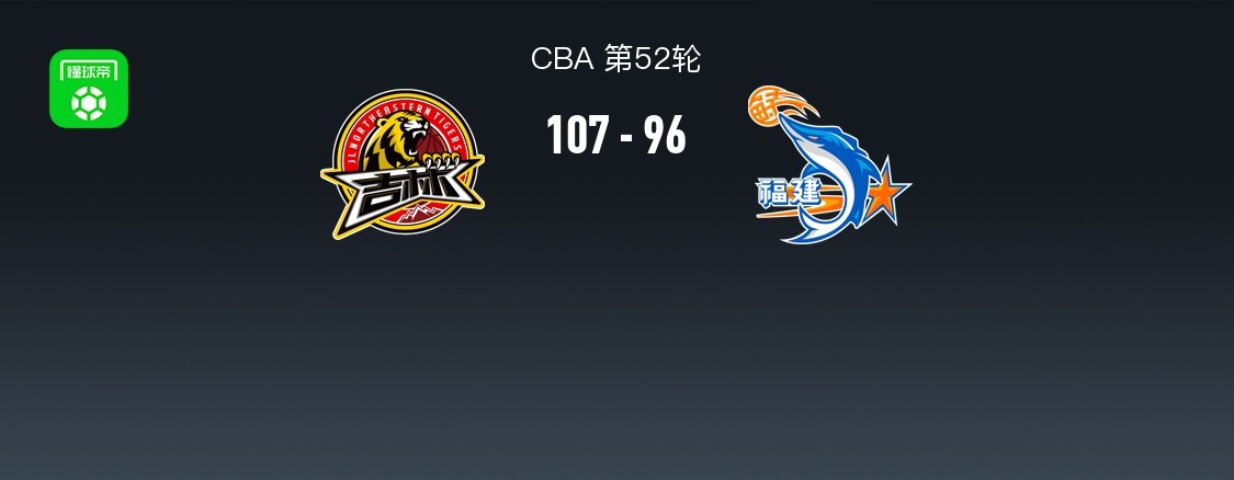 北京时间4月6日CBA 第52轮,九台农商银行对阵福建浔兴股份。半场吉林39-44福建,最终吉林107-96福建。