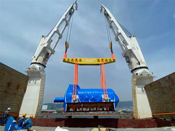 此次发运,采用起吊能力达640吨的重吊船抬吊操作装船。为确保操作过程绝对安全,哈电国际物流管理团队在启运前与物流分包商精心规划操作方案,严格审核技术细节,对设备包装、吊点重心、结构尺寸等细节与设备厂家充分交流,确保满足核心设备装船、绑扎、运输过程的安全要求,同时积极协调,跟踪对接船、货状态。最终按照发运计划和操作方案要求,顺利完成装船发运。