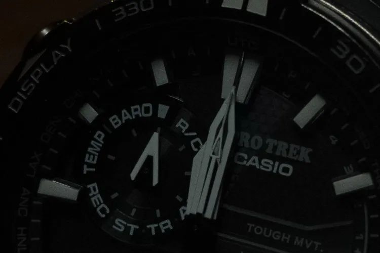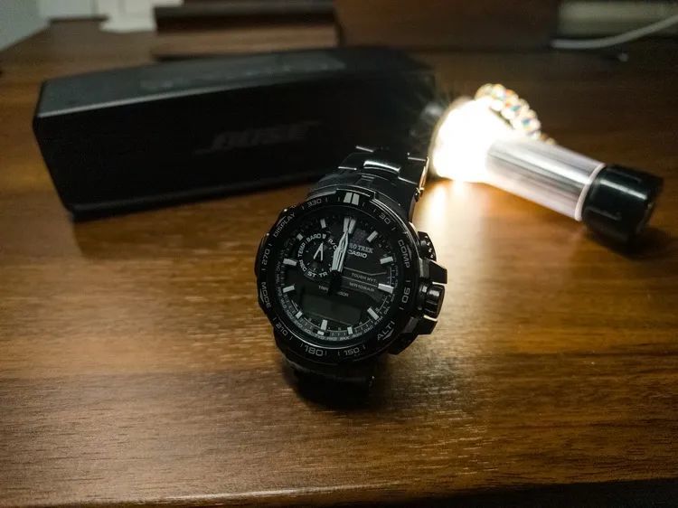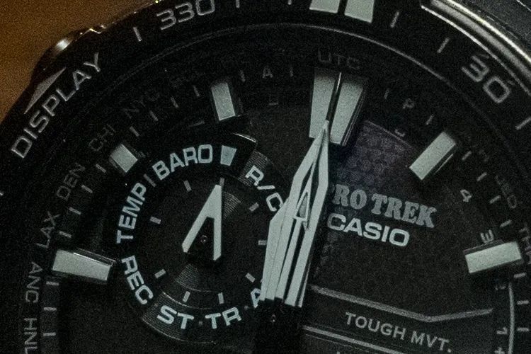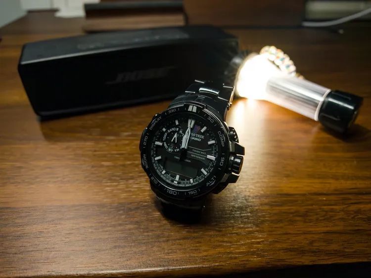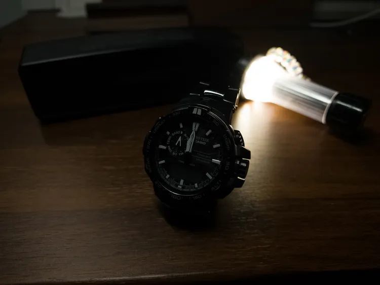 得益于高动态范围,我们能够很轻易地保留高光细节的同时调亮暗部细节,但是画面中噪点非常严重,观感非常差。如果此时采用传统降噪方法,在减少噪点同时会降低画面清晰度,而且对饱和度毫无帮助,手表看起来像是黑白一样。再改用了Lightroom的AI降噪后,噪点大幅度减少,清晰度更好,饱和度有了质的提升——能够看到表盘反光带来的彩色纹理。