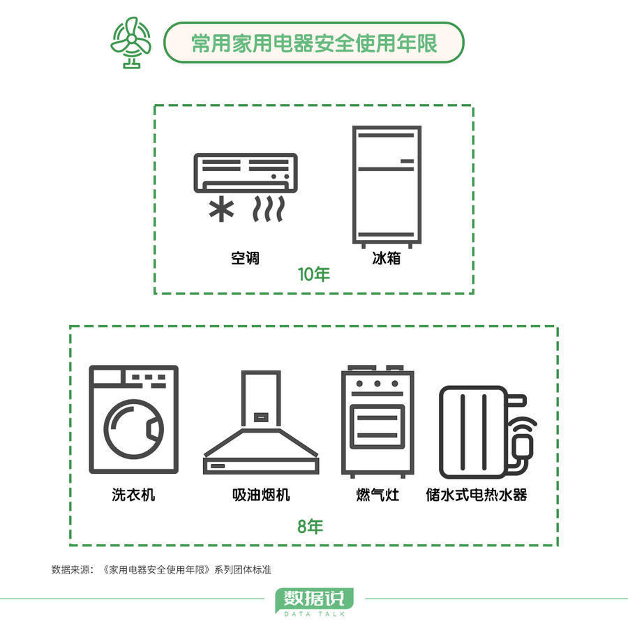 在很多人的想法里,家电一般是坏了换新,或者搬新家时购新,但你知道,常用的家用电器有安全使用年限吗?