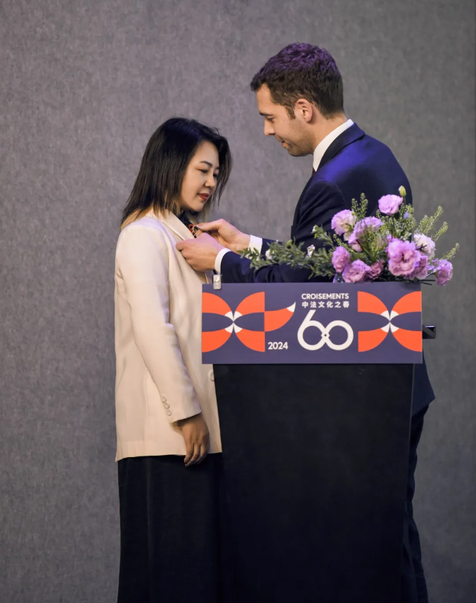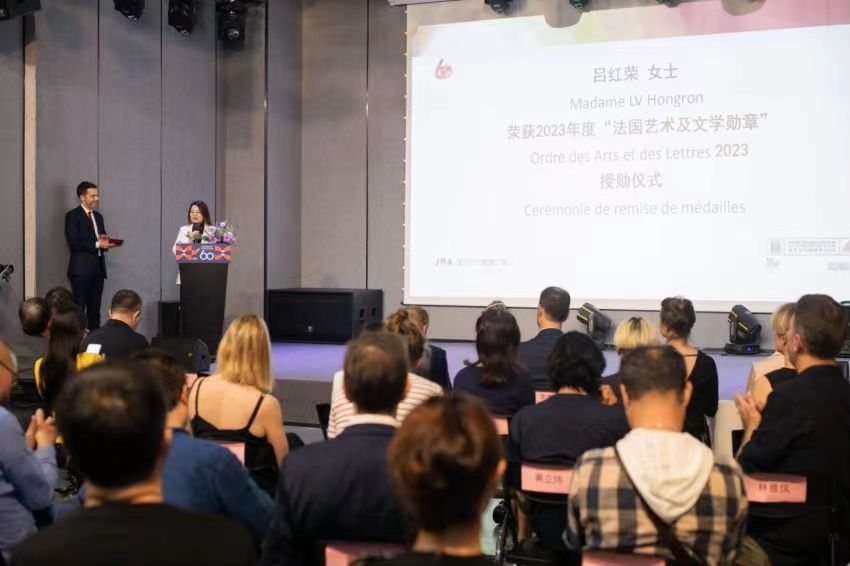 裴国良的讲话使得整个仪式更加具有特殊的意义和庄严感。并在讲话发表后将代表法国艺术文学领域的殊荣骑士勋章别在了吕红荣的胸前,他的发言彰显了法国政府对文化交流的重视,为整个活动增添了正能量。