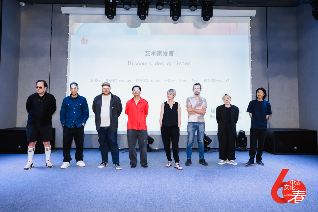 在授勋仪式后,此次联合策展人唐妮诗对展览进行了介绍,并认真地介绍了此次来深圳进行驻地创作的艺术家们,他们来自四个国家,一共有八位: Shoe(荷兰)、JonOne(法国)、YZ(Yseult Digan)(法国)、M-city(波兰)、Seth(法国)、Zinan Lam(中国)、Zoie Lam(中国)以及Whyyy(中国)。另外一位现场创作的艺术家 Sébastien Preschoux 因其他工作缺席。