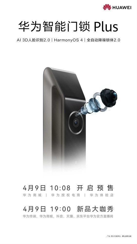 近期,华为先后推出了多个智能新品,包括手环、手表和智慧屏等。就在4月9日,华为在智能家居领域又带来了新品——华为智能门锁Plus。据CNMO了解,华为智能门锁Plus于今日正式开启预售,预售价为2899元(原价3299元),以AI 3D人脸识别2.0和全自动降噪锁体2.0等作为主要卖点。