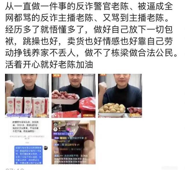 4月7日晚,因直播连麦宣传反诈走红的前民警老陈开始直播带货,引发热议。