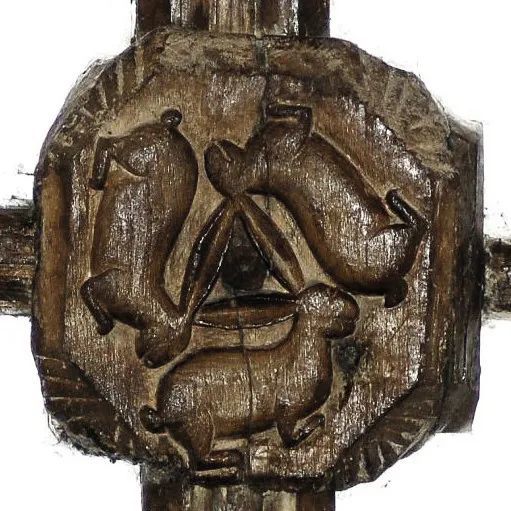 德国有一句古老的谚语:三只兔子一共有三只耳朵,每个兔子都有两只耳朵。这句话对应着三兔共耳。迄今为止最古老的三兔图位于敦煌的莫高窟壁画,绘于公元6世纪。此后沿着丝绸之路进入欧洲,用作宗教建筑或装饰。