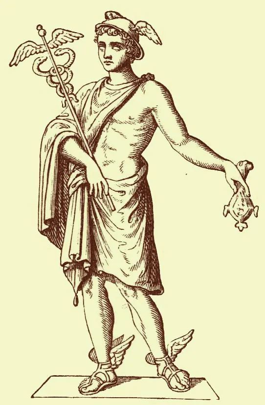 双蛇杖又名商神杖,相传由黄金制成,双蛇缠绕其上,顶端有一对翅膀,是希腊神话中赫尔墨斯(Hermes)的短杖。由于他的权杖可以使清醒的人陷入昏睡,沉睡的人获得清醒,所以他也被当作窃贼的守护神。在崇尚商业往来的古罗马时代,掌管商业与交通的赫尔墨斯备受商人与旅人的尊崇,他的权杖也被当作交通、贸易和运输领域的象征,当今世界各国海关多采用双蛇杖为标志。