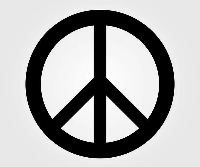是由一竖、反转V字和圆形组成的符号,又名“反战标志”,由杰拉尔德·霍尔托姆(Gerald Herbert Holtom)为英国核裁军运动所设计。这一符号象征着一个人面对着满世界的核武器,绝望地摊开双手。