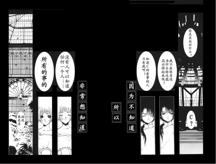 CLAMP最喜欢在《CLOVER》中使用蒙太奇,比如这张。