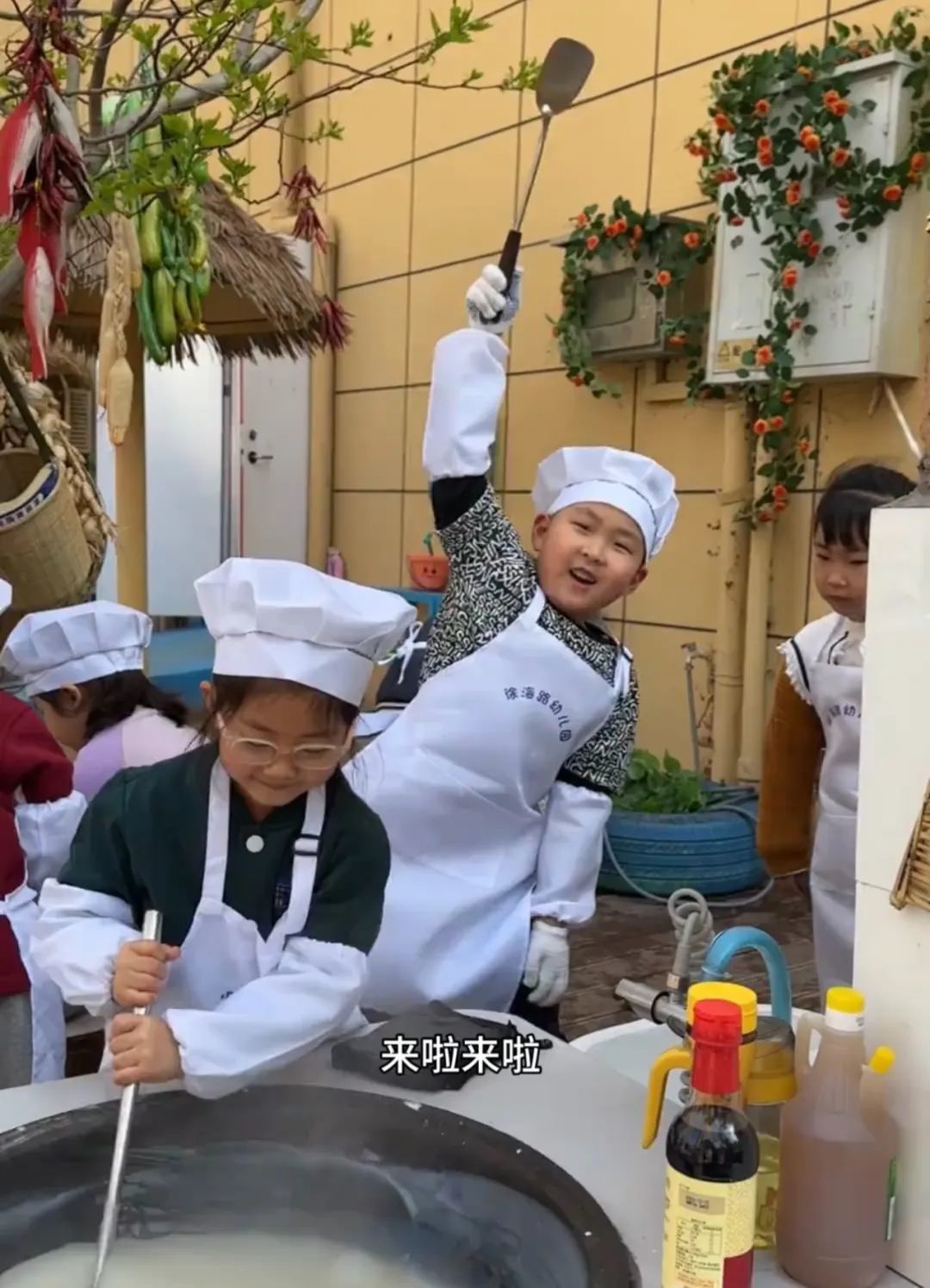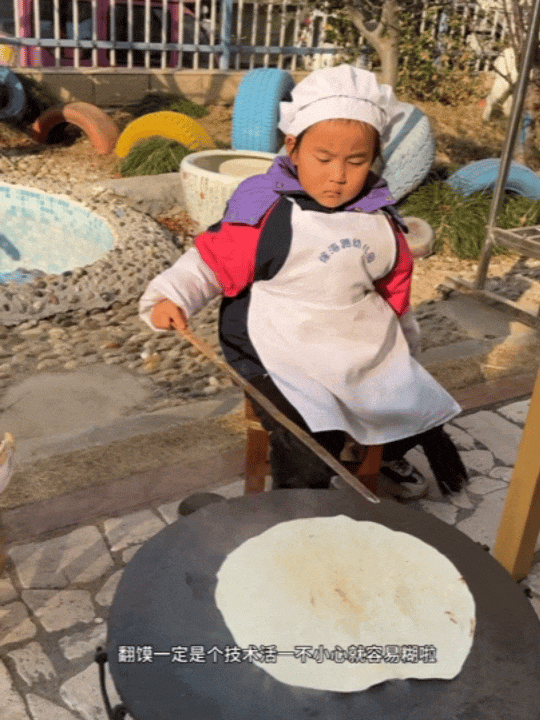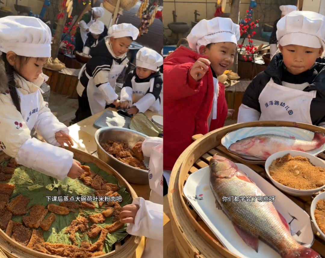 打开园长发布的视频,我恍惚间以为误入了“新东方幼儿烹饪学校”。