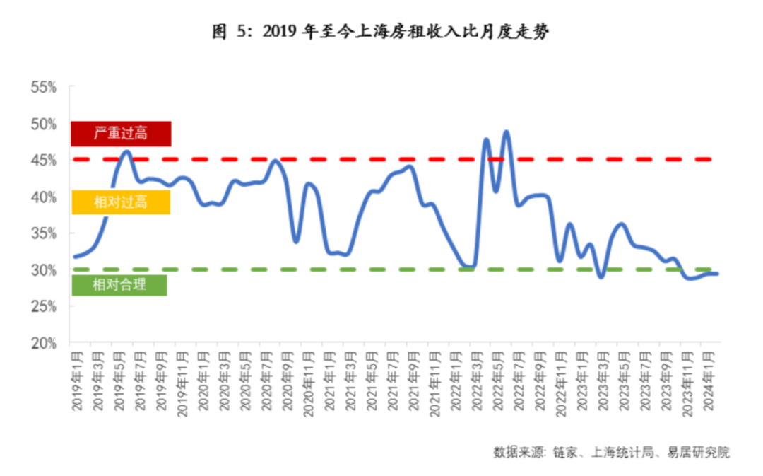 甚至,在房租下降的影响下,2月上海的房租收入比为29.42%,已连续四个月保持在相对合理区间,这一平稳现状在近五年首次出现。