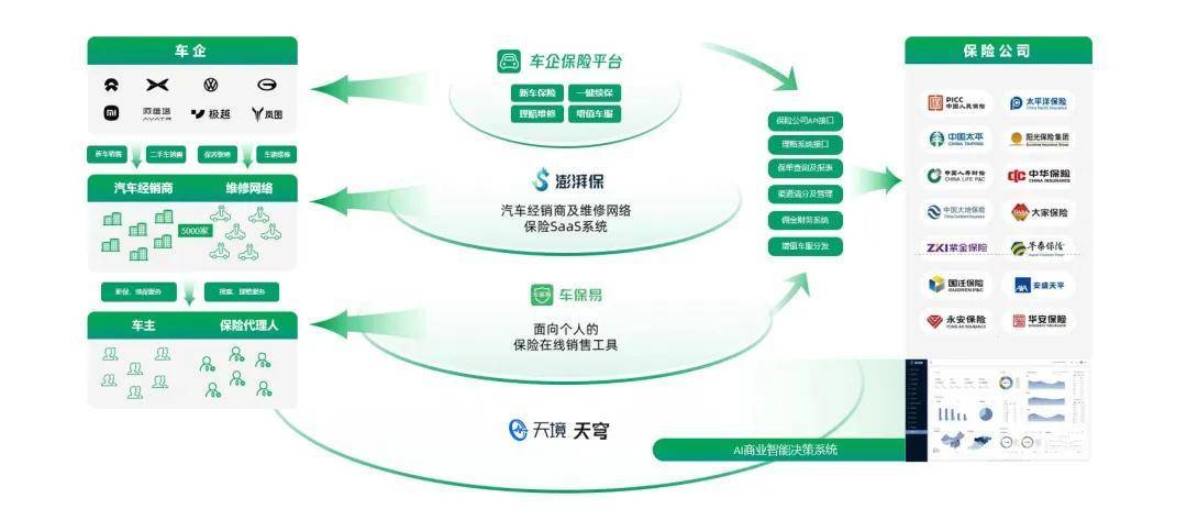 其优势在于,可以为几乎车险生态中各类主体提供数字化解决方案,以数字化和智能化能力为车企与保司架起桥梁。公司开发的新能源汽车保险SaaS系统,集合多家保司车险产品,以嵌入式服务打通车企、保司数据链,推出线上投保和理赔SaaS系统,让车主非常便捷地完成车险购买和理赔服务体验。