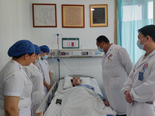 (▲湖南省人民医院胸外科主任佘科霖教授等查看患者术后恢复情况)