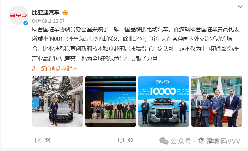 比亚迪汉成为联合国驻华办官方用车,不仅是比亚迪以其创新的技术和卓越的品质赢得认可,更是中国新能源汽车产业赢得认可的一个缩影,我们也可以看到比亚迪作为国产新能源代表走向海外市场之后所取得的耀眼成绩,看到中国汽车在为推动全球范围内的新能源汽车普及、为全球的绿色出行所作出的贡献。