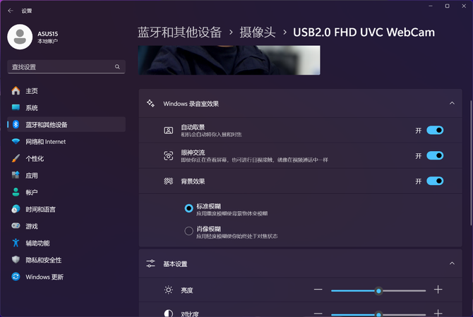 此外,AMD 还跟 Windows 11 系统深度合作,通过视频会议常用的摄像头,带来更高效、更有质感的画质效果。比如工作室效果,我们可以开启自动取景,让人物始终处于视频画面的中间。