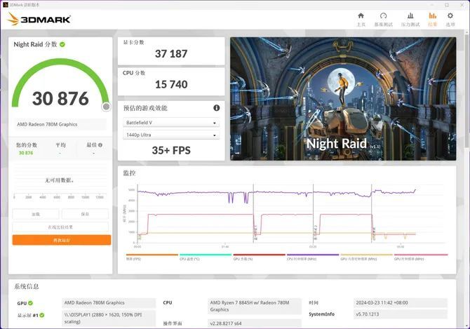 Night Raid 主要针对具有集成显卡的 PC 进行测试,综合得分 30876。