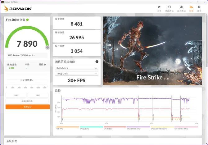 DX11 1080P 分辨率的 3DMark Fire Strike 测试,综合得分 7890。