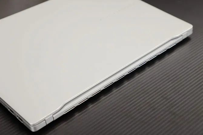 A 面的底部还采用了凹形挖空设计,视觉上看起来更加灵动而轻薄,而且不会遮挡机身后部的散热口,内部的热量可以很高效的排出。