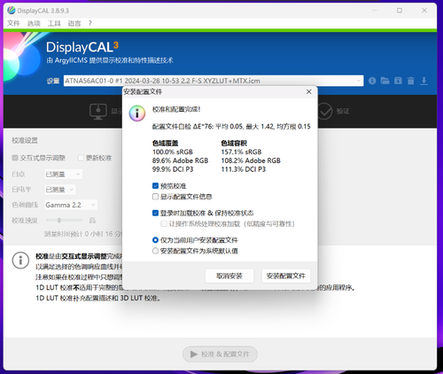 在 Display P3 模式下,使用校色仪实测的结果可见,99.9% DCI P3 色域覆盖,111.3% DCI P3 色域容积。