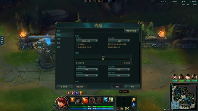 《英雄联盟》的游戏,2.8K 分辨率全屏显示,图像画质中等,帧数在 130-140 FPS,即使在对阵的场景下,也不会卡顿,而且华硕无畏 Pro15 2024 的 OLED 屏,120Hz 刷新率,也为游戏助力不少。