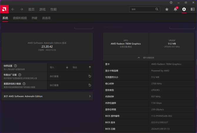 得益于处理器工艺和频率的提升,以及优秀的 RDNA3 架构,Radeon 780M 拥有 12 个 CU 核心,显卡频率高达 2700MHz ,其性能已经远超核显的意义,不仅可以轻松办公,也能比较流畅的运行一些网络游戏。而且从近几年的笔记本电脑来看,核显性能的强大,已经基本上淘汰了入门级独显。