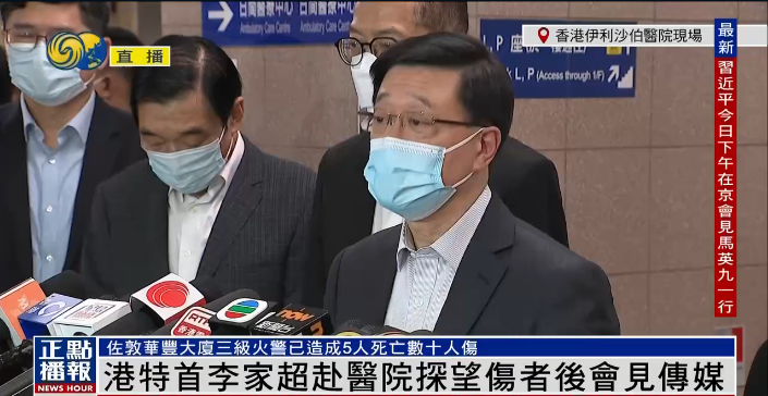 李家超高度重视事件,已指示医院管理局全力救治伤者,警务处、消防处等相关部门调查起火及造成严重伤亡的原因。